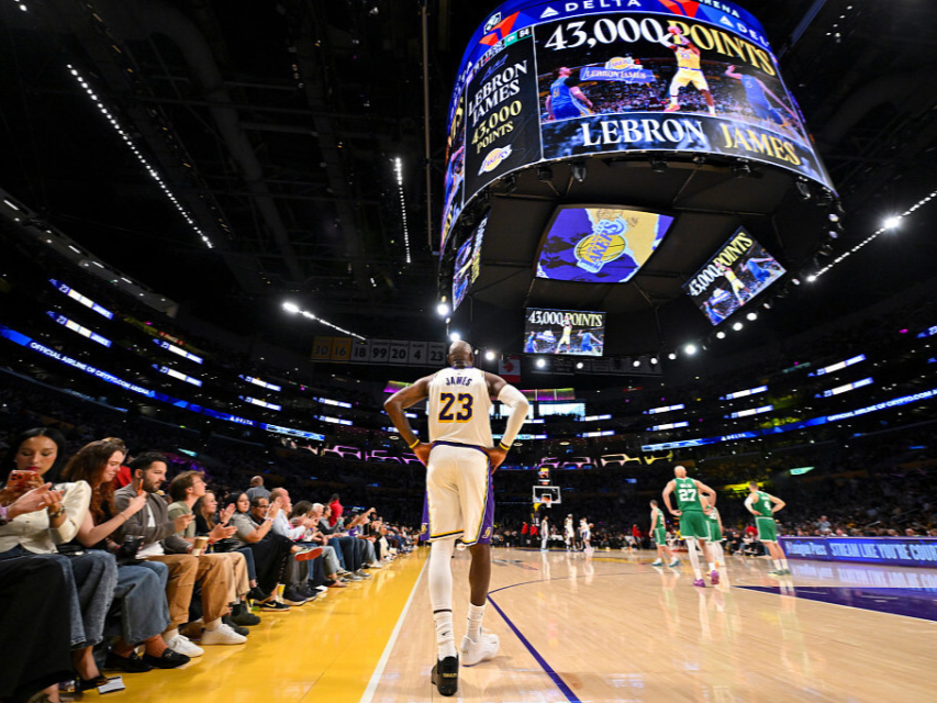 詹姆斯里程碑惨败绿军,湖人名宿场边无地自容,科比撑起紫金荣光