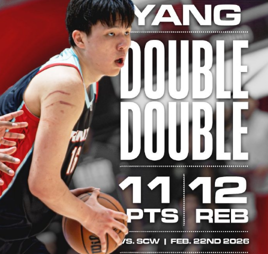 只是杨瀚森上一场开始被下放到发展联盟,他在上一场比赛贡献11分12篮板的两双数据。