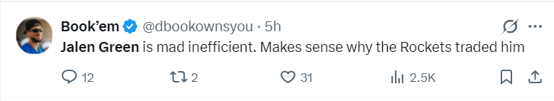 太阳媒体:杰伦-格林效率极低,这也就解释了为何火箭要将他交易来。