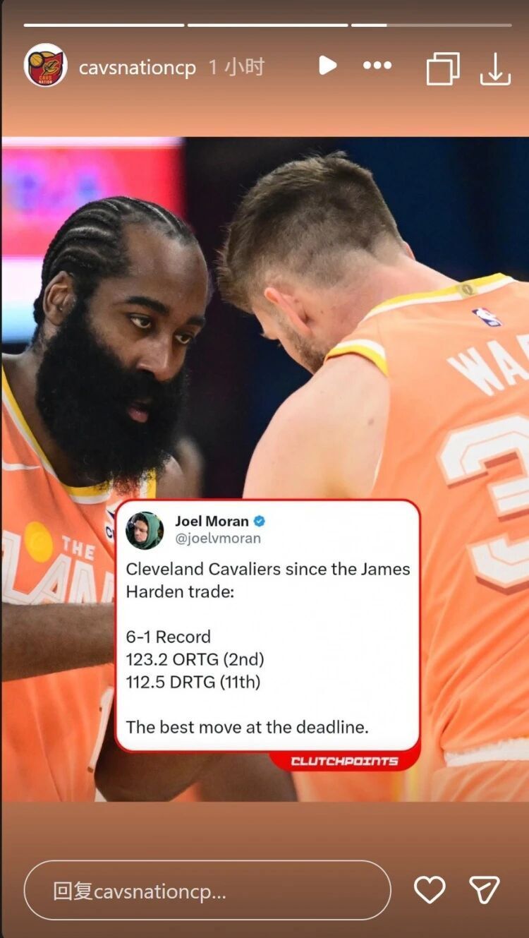 尽管哈登的伤势不能算严重,可骑士媒体Cavsnationcp还是不禁感叹道:无论伤情严重程度如何,考虑到他对球队进攻端的重要性,这无疑是一个惨重的打击。