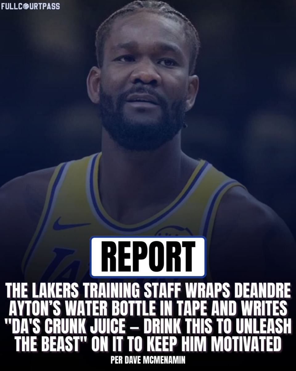Dave McMenamin报道,为唤醒艾顿的竞争力,湖人管理层与训练团队推出多项专属激励方案。篮球运营总裁佩林卡定制了一件黑色T恤,以金色印花呈现半张狮子脸与半张艾顿的脸,寓意唤醒其“猛兽”本性;训练团队则在赛前用运动胶带缠住艾顿的水壶,写下“艾顿的暴走能量饮——喝下它,释放猛兽”的字样,细节处点燃其斗志。