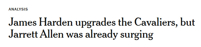 他与艾伦的搭档更是效果显著。哈登加盟后,艾伦在篮下的效率再上台阶。骑士如今的半场进攻,很大一部分都围绕哈登与艾伦的挡拆展开,从多个方向撕扯防守。