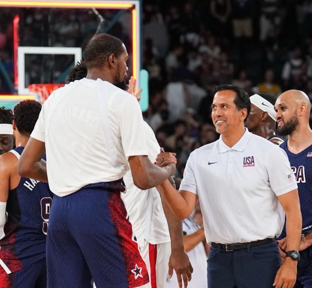 如果杜兰特最终决定继续追逐更多奥运金牌,斯波显然很愿意再次执教他。“他只是这么一说,就已经很了不起了。你知道的,这就是美国篮球的文化——你希望最好的美国球员主动举手说,‘算我一个。’”斯波回应道。