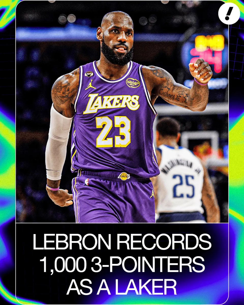 更值得一提的是,詹姆斯还创造了一项NBA历史独有的纪录,成为联盟历史上首位在多支球队三分命中数均超过1000个的球员。他在骑士时期曾投进1251记三分,是骑士队史三分王,如今又在湖人达成三分千记成就,一东一西两支球队的三分千记,尽显他职业生涯的投射能力和持久的竞争力。