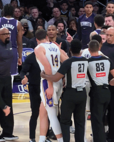 湖人首发:东契奇、里夫斯、斯玛特、詹姆斯、艾顿。国王首发:威少、克利福德、德罗赞、阿丘瓦、雷诺。威少开局手感不佳,首节5中1仅得2分3助攻3失误。国王全队三分球5中0,第一节打完,湖人36-18领先国王18分。