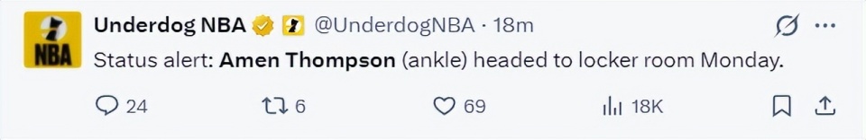 阿门第四节还剩4分多钟因为脚踝伤势返回更衣室。