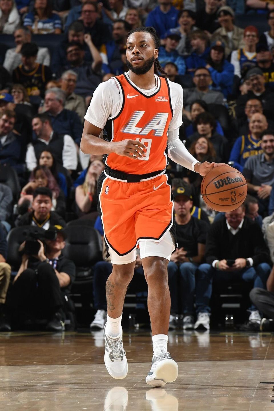 快船和勇士的比赛,是加兰在快船的首秀。2月初他被骑士送到快船换来哈登,养伤就养了一个月。事实上他是1月15日右脚大拇指扭伤,一直休息到现在。