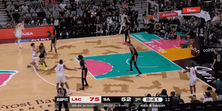 第二节马刺全队仅得21分,快船单节砍下34分。半场战罢,快船66-46领先马刺整整20分。大洛上半场11中7,狂砍17分4篮板3抢断,家有一老如有一宝。第三节开始,快船最多拉开到25分。眼看马刺要被打花了,尚帕尼突然爆发!