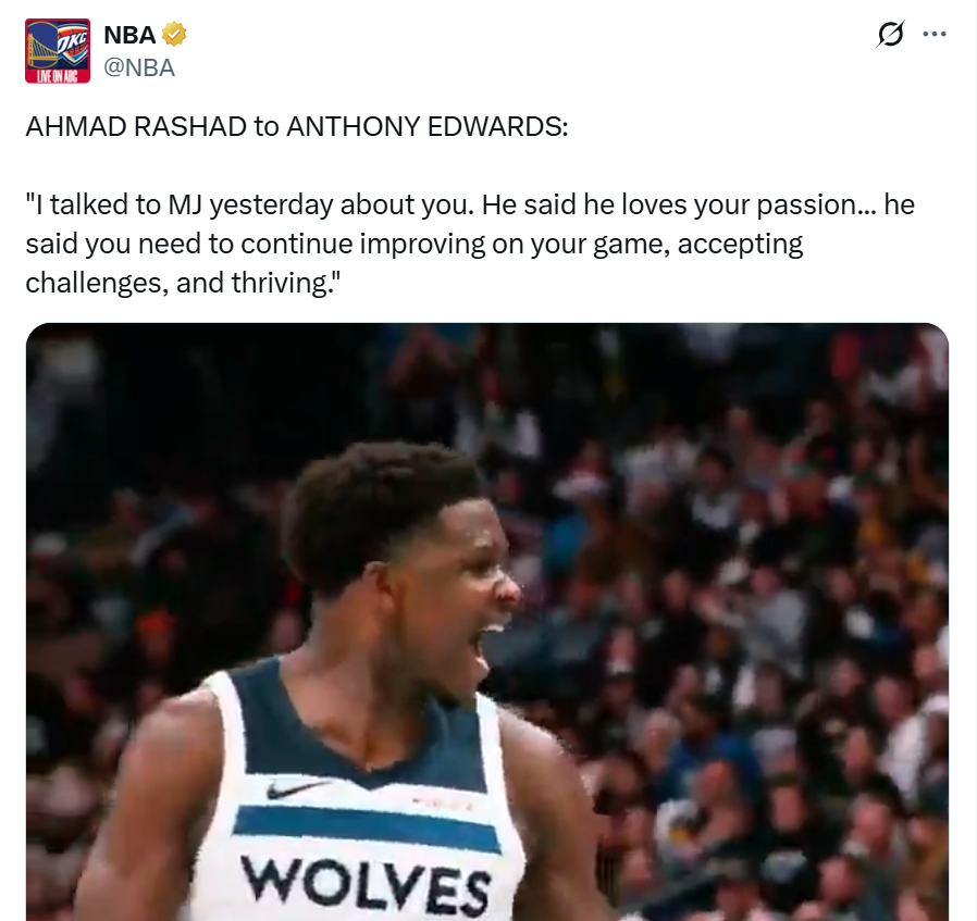 面对爱德华兹这样的表现,美记Ahmad Rashad在采访爱德华兹时透露,乔丹对其非常欣赏。