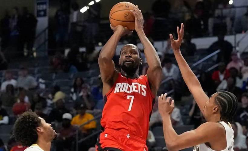 大前锋位置则是杜兰特,历史级别的得分手。杜兰特拥有2米11的身高和后卫般的控球手感,无解的干拔跳投让他在任何防守下都能轻松得分,打谁都是错位的身体优势,让他成为这套阵容的攻坚利器,与库里的外线呼应、与奥尼尔的内线配合,都能形成极致的进攻威胁,堪称阵容中的"得分机器"。