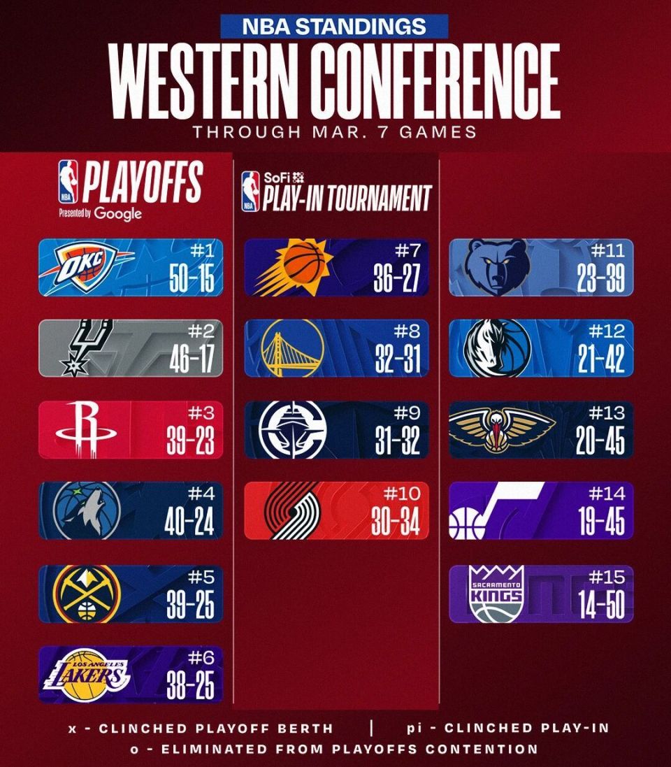 从2月中旬到3月3日,活塞长达三周占据联盟第一的位置。随着此次遭遇3连败,活塞直接从联盟第一变成了第三。今天另外两场比赛:雷霆104-97击败勇士,雷霆成为本赛季首支50胜球队;森林狼92-119惨败魔术,跌至西部第四。
