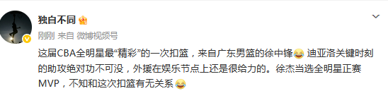 媒体人“苏群”发文点评:徐杰最后还来一记托举梦想扣篮,票王+MVP!