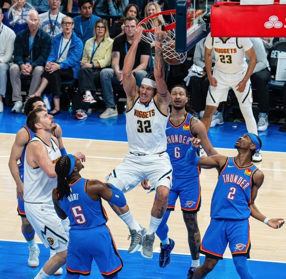 本场比赛掘金队的阵容已经很齐整了,除了沃特森之外,其他主力球员都在阵中,掘金本赛季很少打这么富裕的仗,雷霆这边哈腾、杰伦威廉姆斯、卡鲁索、霍姆格伦不打,少了4位绝对的主力球员,不过雷霆队当家球星亚历山大带队出战,有亚历山大在,雷霆队就有一战之力,这场球就是很好的证明,残阵的雷霆面对全主力的掘金,打得相当激烈!