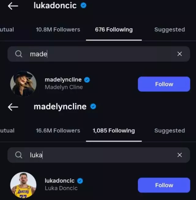 据悉,这起绯闻的起因十分偶然,粉丝发现东契奇与《外滩探秘》女星玛德琳在社交平台上互相关注,恰逢东契奇刚宣布与交往近十年的未婚妻分手,便迅速引发了新恋情猜测。玛德琳作为好莱坞冉冉升起的新星,主演过《外滩探秘》系列剧集,还参演过《利刃出鞘2》等作品,粉丝基础深厚,两人的互关举动瞬间引爆舆论。