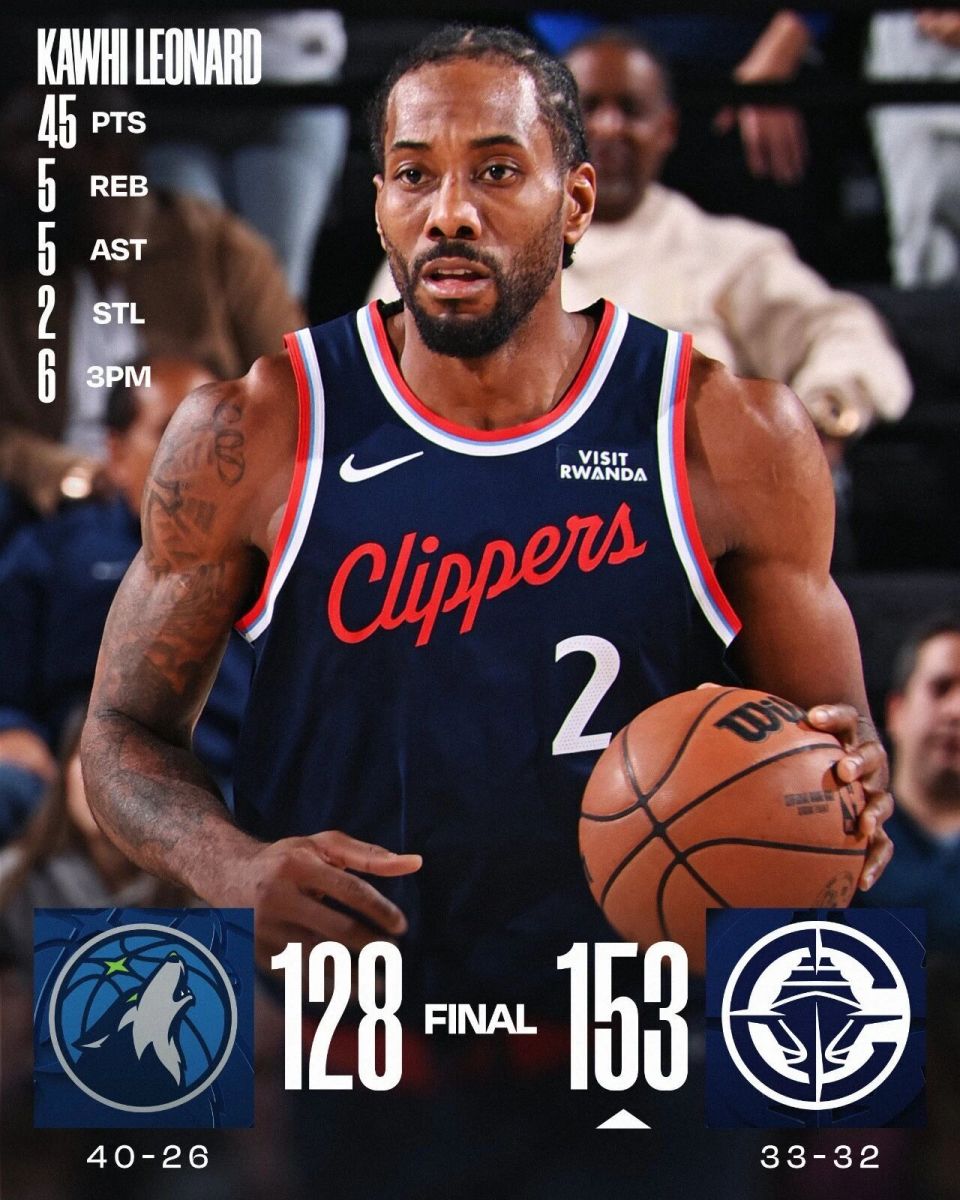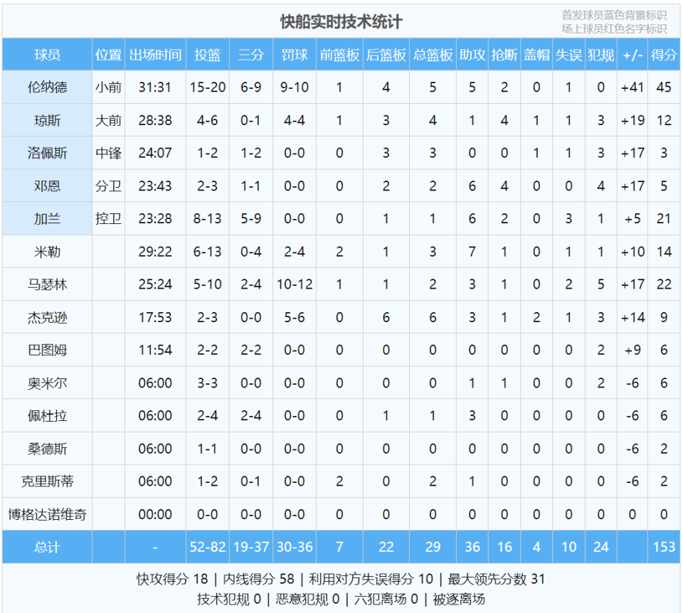 快船北伐期间,双杀东部第一的活塞和西部第三的火箭,此外还两胜西部第四的湖人和西部第六的森林狼。今天快船狂轰153分,创造队史单场第二高分,仅次于2022-23赛季的175分。2023年2月25日,快船历经双加时175-176不敌国王。