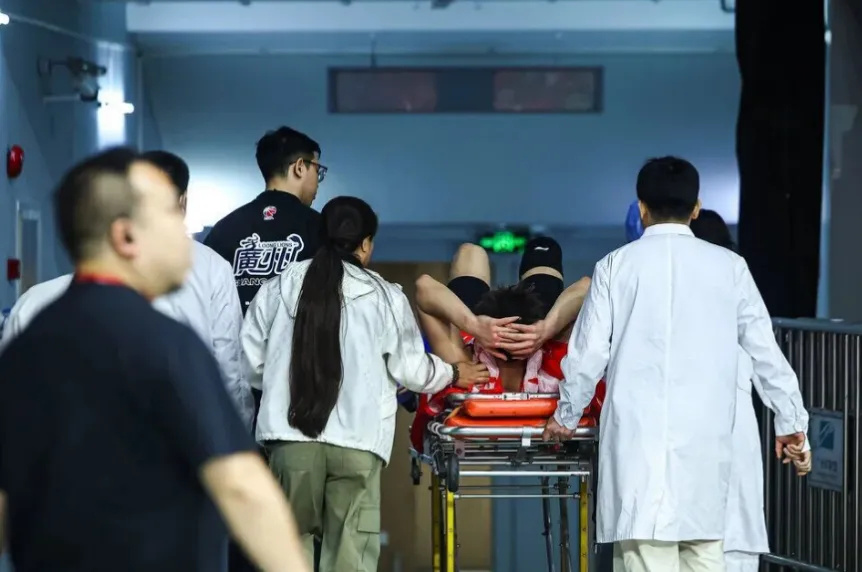 先把时间线拉回那个让人心碎的夜晚。3月6日CBA补赛,广州对阵山东,末节决胜时刻,郭艾伦一次快攻上篮落地时左腿扭曲,当场痛苦翻滚,狠狠拍打着地板,那种绝望隔着屏幕都能感受到。随后他被担架车直接推出赛场,队医全程紧急处理,现场一片揪心。