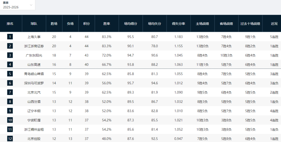 CBA排名又乱了!上海杀回第一,广东双杀深圳,辽宁四连胜卷土重来