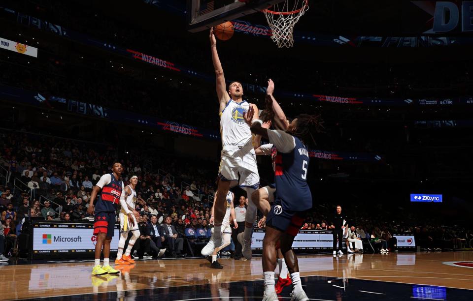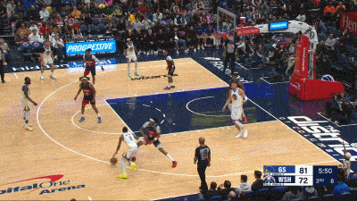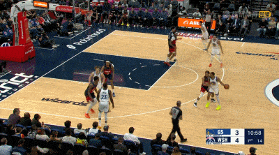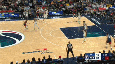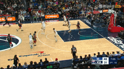 次节比赛,梅尔顿两分得手,桑托斯命中三分。吉尔两罚全中,梅尔顿两分命中随后罚球命中。约翰逊连得5分,波尔津吉斯扣篮命中。莱利和特雷杨连续命中三分,佩顿上篮得手。特雷杨两分命中,波尔津吉斯和库利巴利先后商量。佩顿完成扣篮,特雷杨两罚全中,莱利三分命中。斯潘瑟上篮命中,约翰逊和特雷杨连续命中三分。佩顿上篮命中,随后罚球命中,特雷杨补篮得手。波尔津吉斯和梅尔顿连续得手。库利巴利扣篮命中,莱利罚球命中,尤尔特塞文两罚全中后,勇士队64-57领先奇才队结束上半场比赛。