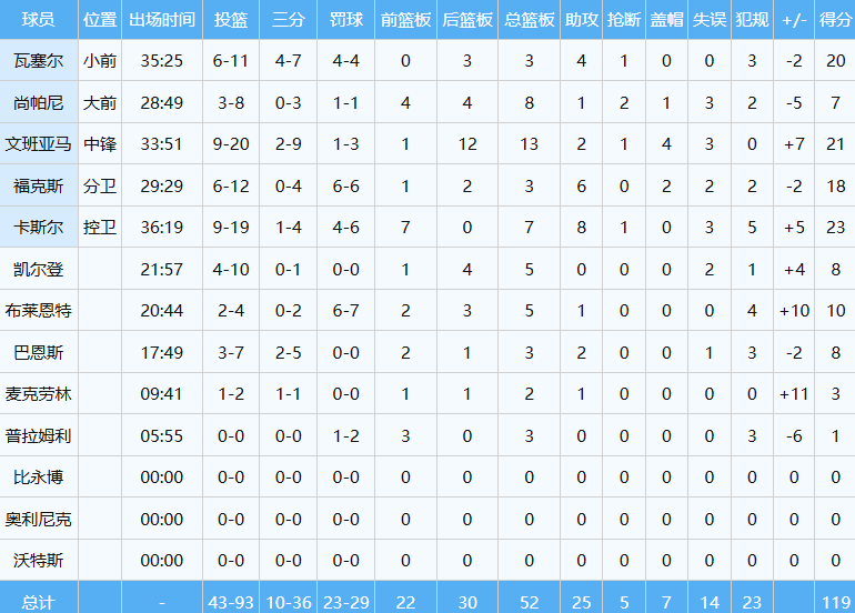 言归正传,面对没有伦纳德的快船,马刺在客场打得异常艰难,好在最终依然可以119-115险胜,卡斯尔23分7板8助进账,而且7个篮板全部是前场板。