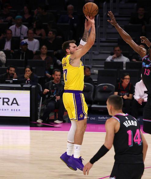 重新回到赛场之后,东契奇继续扛着紫金军团前进,在热火靠着体能优势,不断让几名身强力壮的后卫轮番的情况下,欧洲天才少年仍然保持了强大的进攻火力,四节战罢靠着30次出手命中18球的发挥,贡献了60分、7个篮板、3次助攻和5次抢断的全面个人数据,其中单赛季232记三分球刷新了湖人队史纪录。