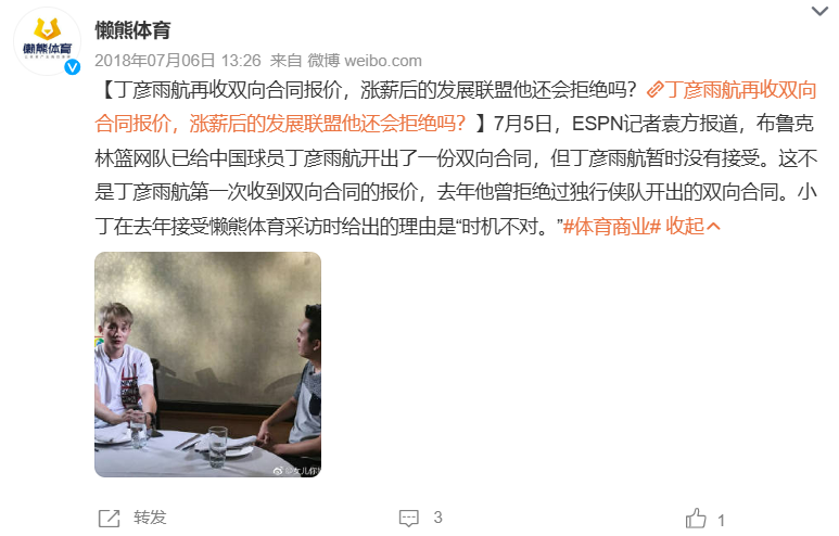 国内知名媒体人报道:丁彦雨航正式结束自己的球员生涯......