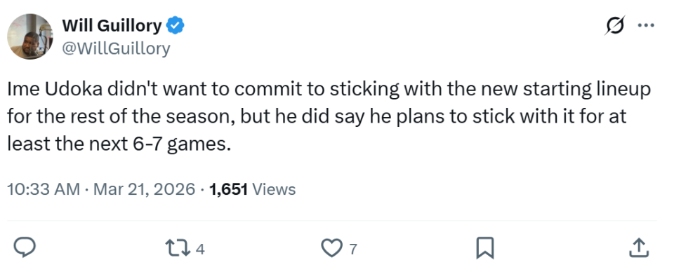 面对肉眼可见的提升,一向十分固执的乌度卡也在赛后公开承诺,将在未来5-8场比赛延续这套首发看看效果。