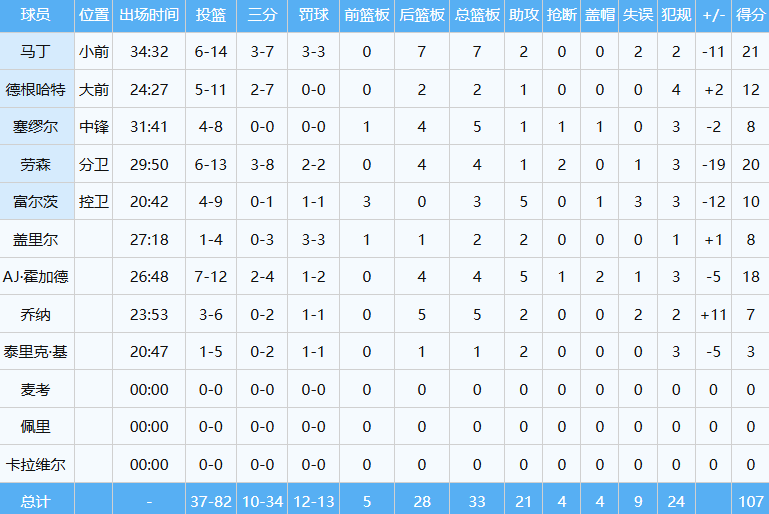 本场杨瀚森延续了超高的进攻效率,首发出战约32分钟,投篮9中6,命中率达到约67%,砍下14分11板两双数据外加3助3帽,没有出现一次失误一次犯规,正负值+24全场最高。
