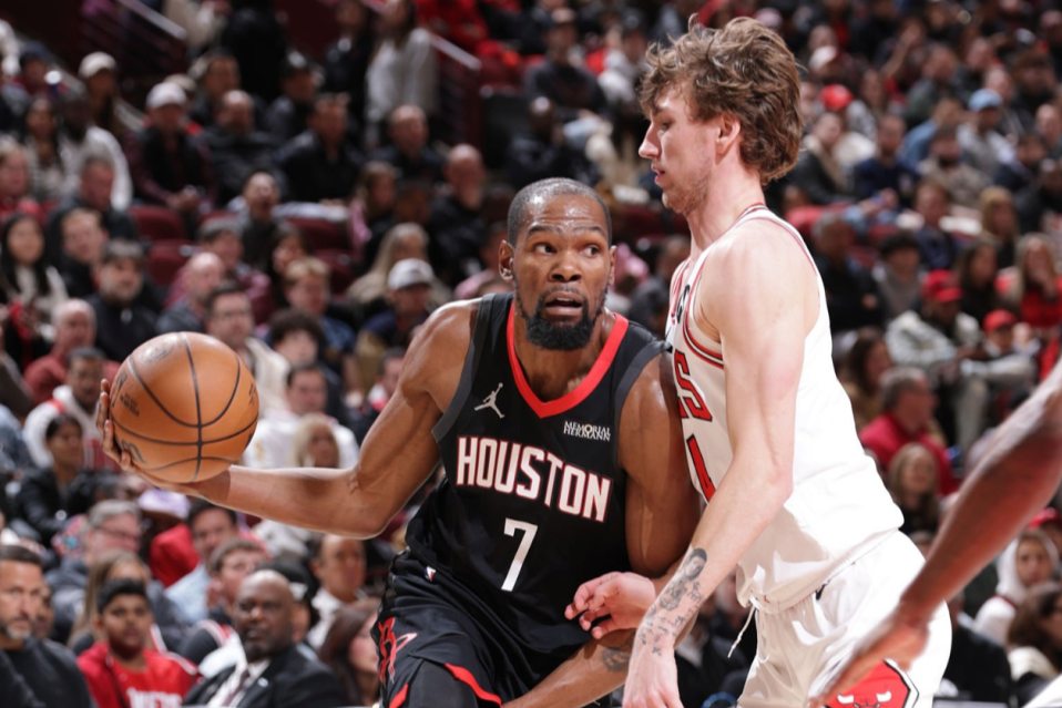 北京时间3月24日,NBA常规赛,火箭客场124-132不敌公牛。杜兰特本场比赛投篮23中15,三分10中5,罚球8中5,贡献40分7篮板5助攻,其中末节个人独得15分,携手申京33分13篮板10助攻,帮助火箭从上半场最多落后22分到末节实现比分反超,最后时刻死神连续挥舞镰刀命中续命三分。然而,火箭无法阻挡公牛的进攻攻势,杜兰特最后时刻出现致命进攻犯规无缘率队逆转,最终火箭被掘金、森林狼战绩反超掉至西部第6。