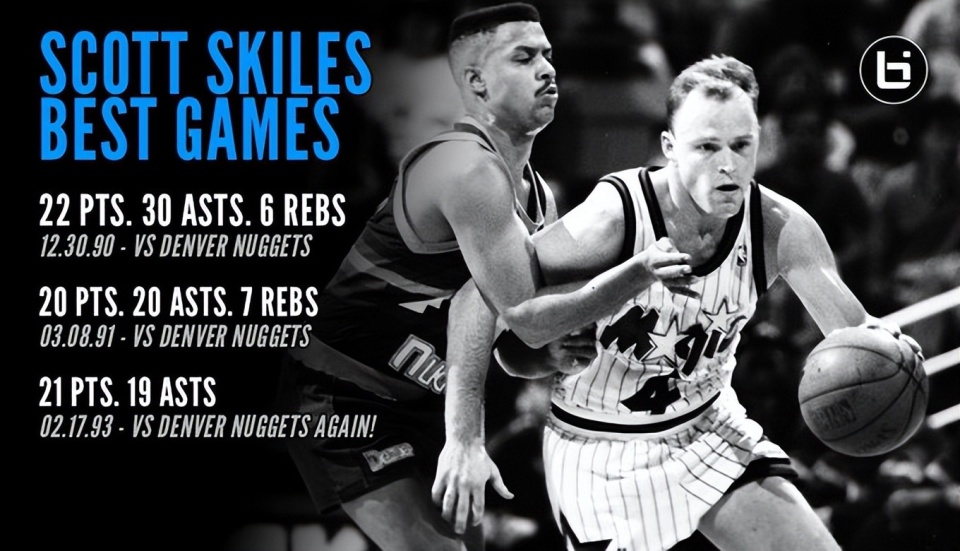 1990年12月30日,斯科特·斯凯尔斯在代表奥兰多魔术队对阵丹佛掘金队的比赛中,送出了: