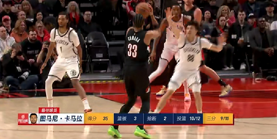 开拓者主场134-99碾压篮网,赢了35分之多,创造球队本赛季最大赢球分差。