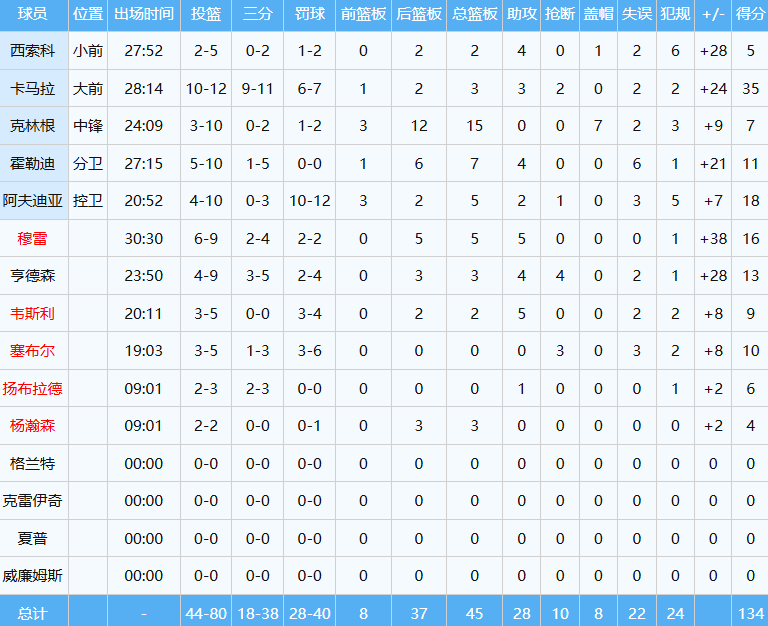 卡马拉绝对是本场的最佳球员,投篮12中10,其中三分11中9(命中率约82%)砍下35分外加3板3助,得分和三分命中数均是个人生涯新高。