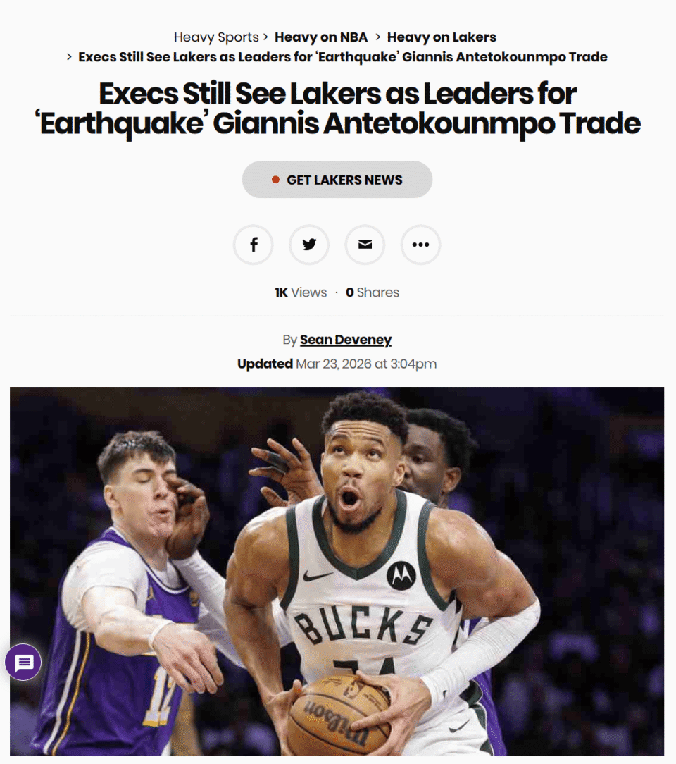湖人领跑字母哥争夺战!目标地震级别交易 两手准备促成其搭档东契奇
