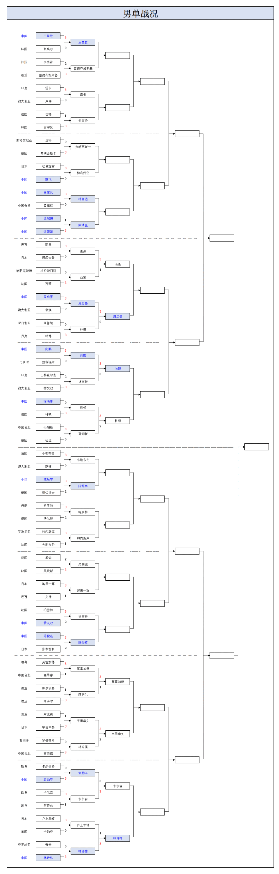 19:10,陈垣宇VS小勒布伦(法国)、黄友政/温瑞博VS黄镇廷/陈颢桦(中国香港);