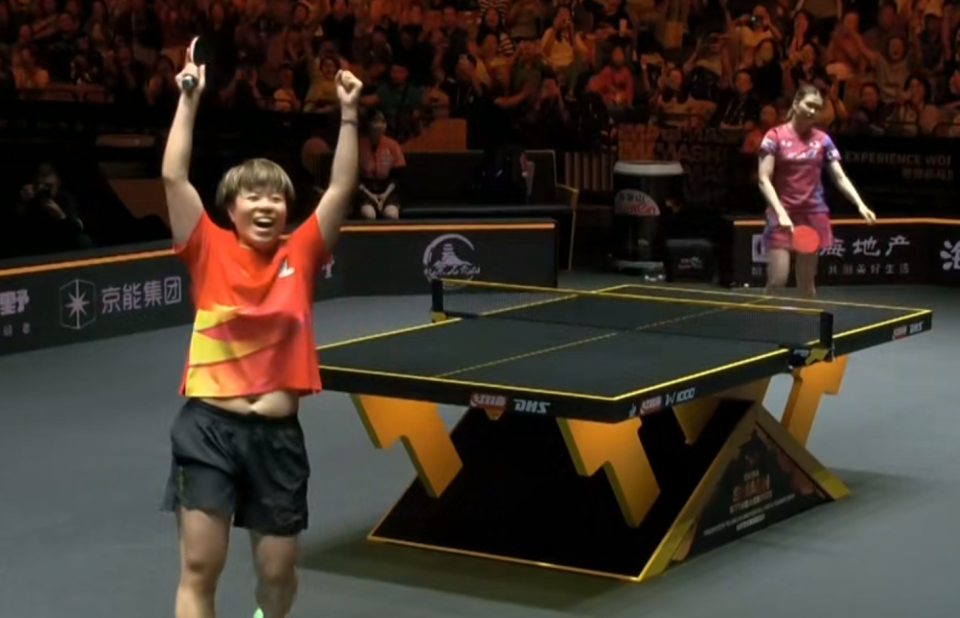 这场比赛王艺迪的发挥就非常稳定了。之前都是着急上手,这场可以拉着打,有机会就冲。要不就是前后调动,让对手非常难受,也找不到任何突破的机会,这是王艺迪可以横扫并复仇的原因,她终于突破魔咒了,赛后王艺迪还在高举双手庆祝。