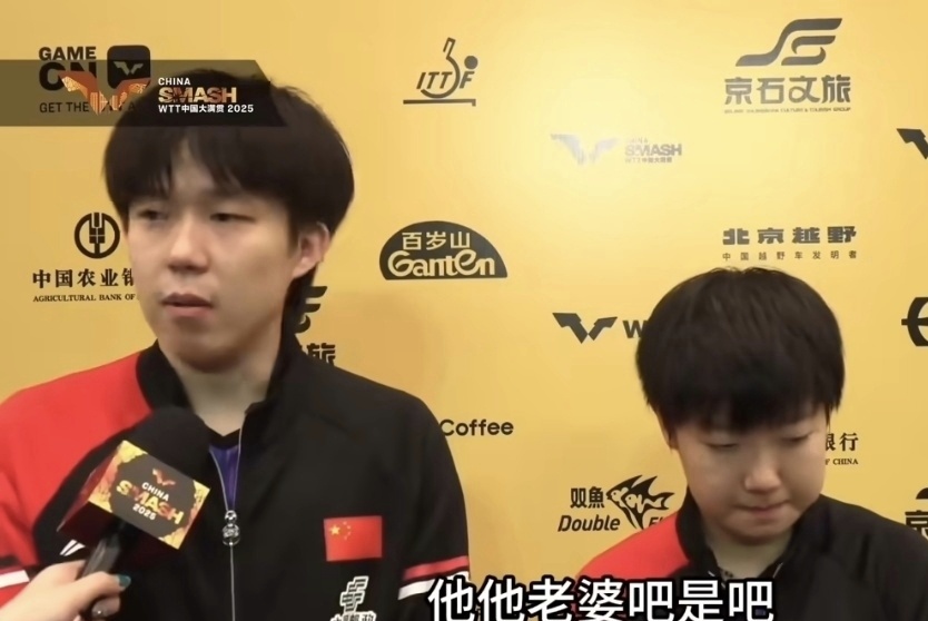 爆笑!王楚钦卡壳半天蹦出一句他老婆,孙颖莎低头憋笑,隔壁老樊心疼