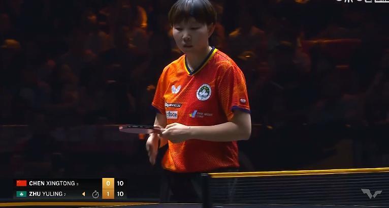 第四局的比赛,朱雨玲开局不错,取得了23-0的领先。此时陈幸同被迫叫了暂停。