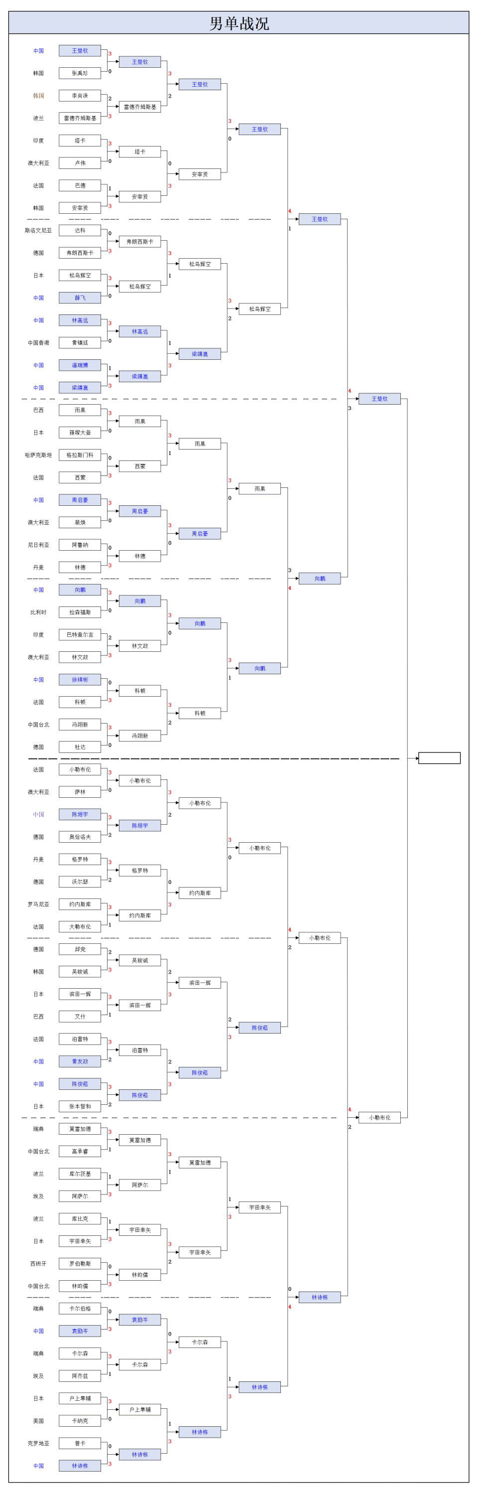 小勒布伦:3-0萨林(澳大利亚)、3-2陈垣宇(中国)、3-0约内斯库(罗马尼亚)、4-2陈俊菘(中国)、4-2林诗栋(中国)。