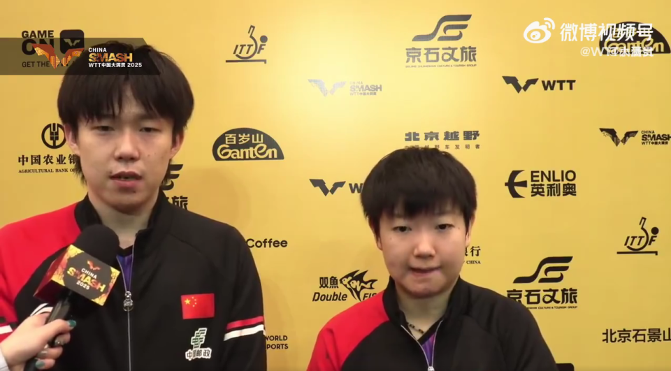 赛后采访时,记者提问王楚钦,“恭喜两位晋级混双决赛,楚钦也是跟我们说一下,因为对方最近排名提升很快的组合,自己在赛前是如何沟通的?”