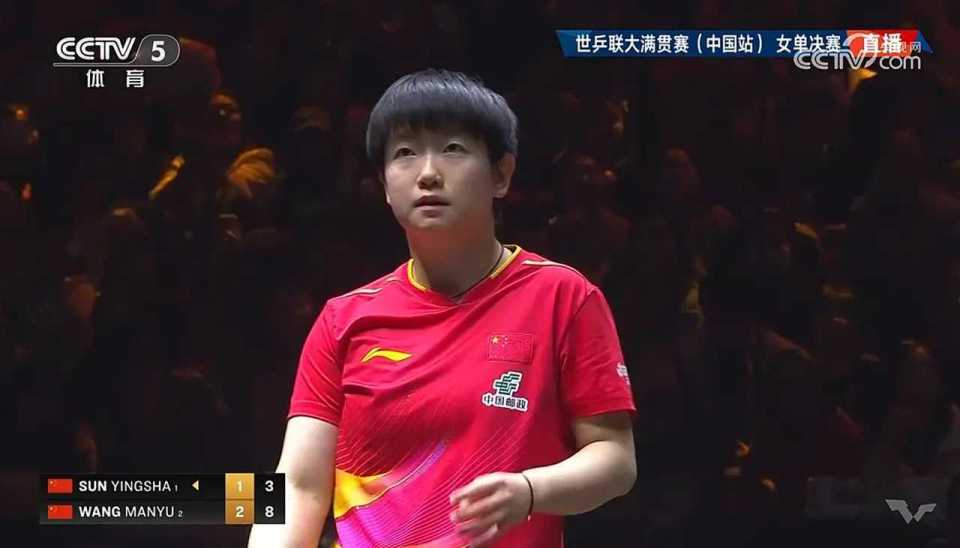 这场决赛孙颖莎和王曼昱连续三站大赛赛场隔网而立。