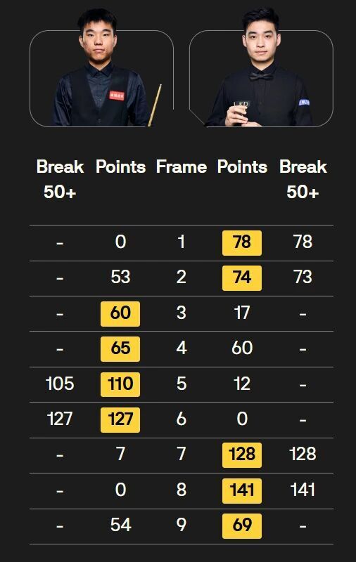 晚间,赵心童对阵老将米尔金斯。首局,赵心童延分优势,被老米2分逆转。第2局,赵心童险胜。第3局重摆后,赵心童两次上手,完成超分。第4局,赵心童两个失误致败,双方战成2平。
