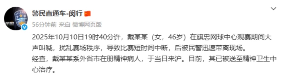 大喊东亚病夫!上海大师赛大闹看台女子身份曝光,警方:外省精神病人