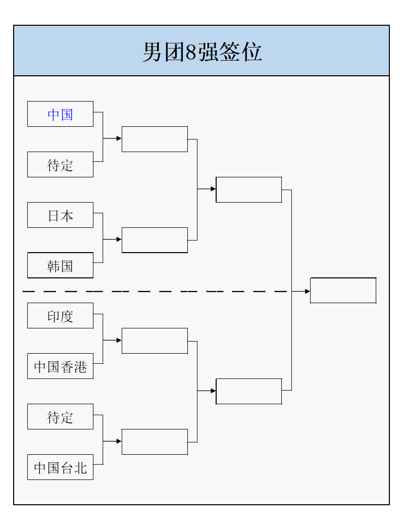 18:30男团1/4决赛:印度VS中国香港、日本VS韩国;
