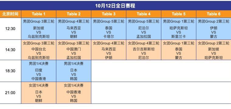 乒乓球亚锦赛:国乒仍不上场!10月12日赛程公布,日本队冲击四强