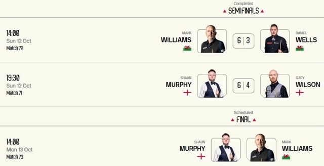 进入四强的墨菲,在半决赛对阵加里威尔逊。