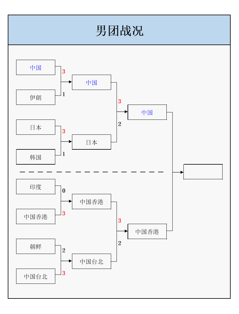 以下为男团两场半决赛的详细比分: