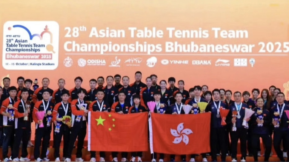 10月15日晚间,乒乓球亚锦赛男团决赛,中国队3-0横扫中国香港队,连续3年夺冠。赛后的颁奖仪式上,中国香港队员跟着中国队一起高唱国歌,让人动容。