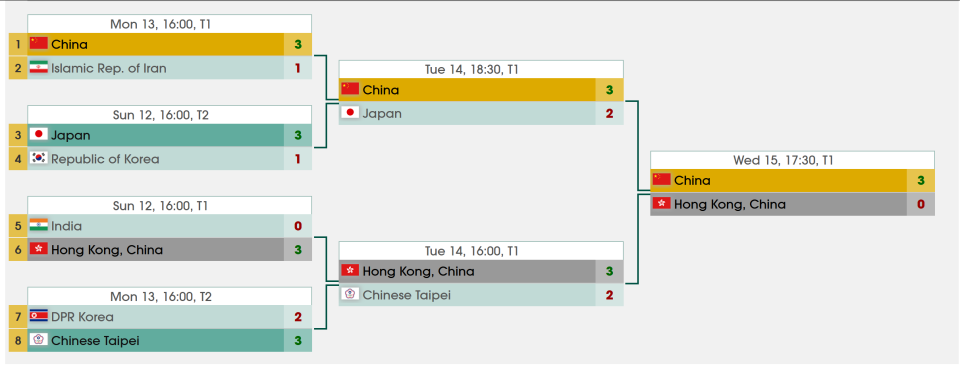 简单说,亚洲锦标赛赛程太短。跟去年打一大堆有的没的单项比赛再打团体不同,这次只有团体。而且中国队这样的高位种子直接从淘汰赛开始打。说是半决赛,其实之前只打过一场。