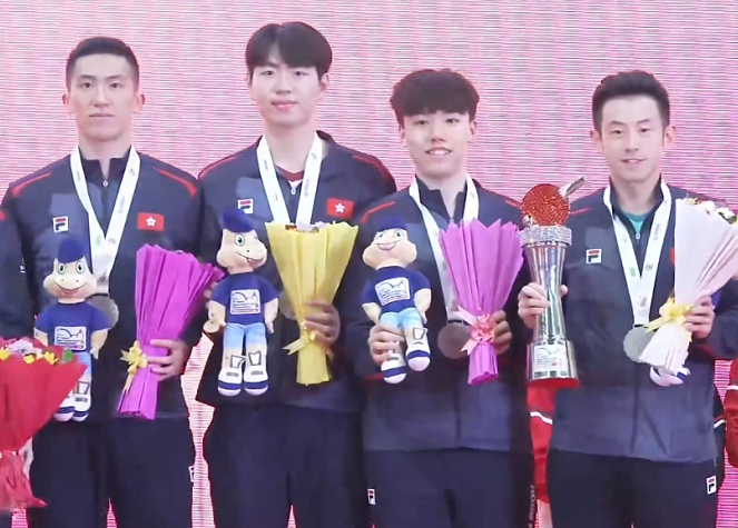 中国香港男团是首次获得亚锦赛男团亚军,创造了历史。队员们自然很开心。他们开开心心地与季军队员握手致意。他们登上领奖台后,脸上洋溢着幸福及自豪的笑容,非常开心。黄镇廷举着亚军奖杯时,脸上露出了灿烂的笑容。