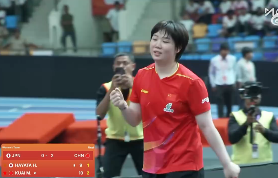 第三盘,蒯曼对阵日本三单早田希娜。比赛耗时36分21秒,蒯曼以3比1击败早田希娜,4局比分:8比11/12比10/11比6/11比9。