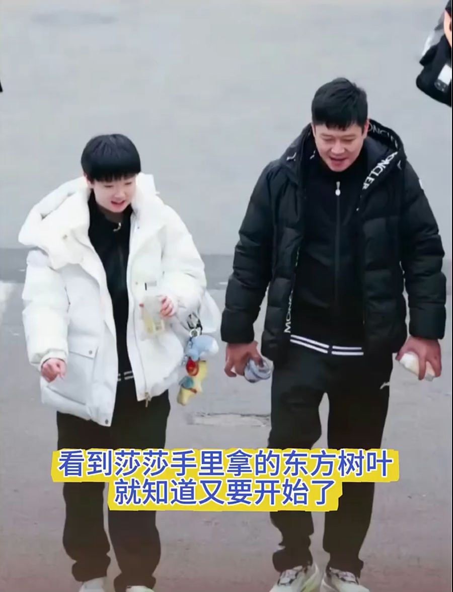 孙颖莎穿着白色羽绒服,一脸可爱,而邱贻可则是一身黑色羽绒服,师徒两人边走边聊,有说有笑。